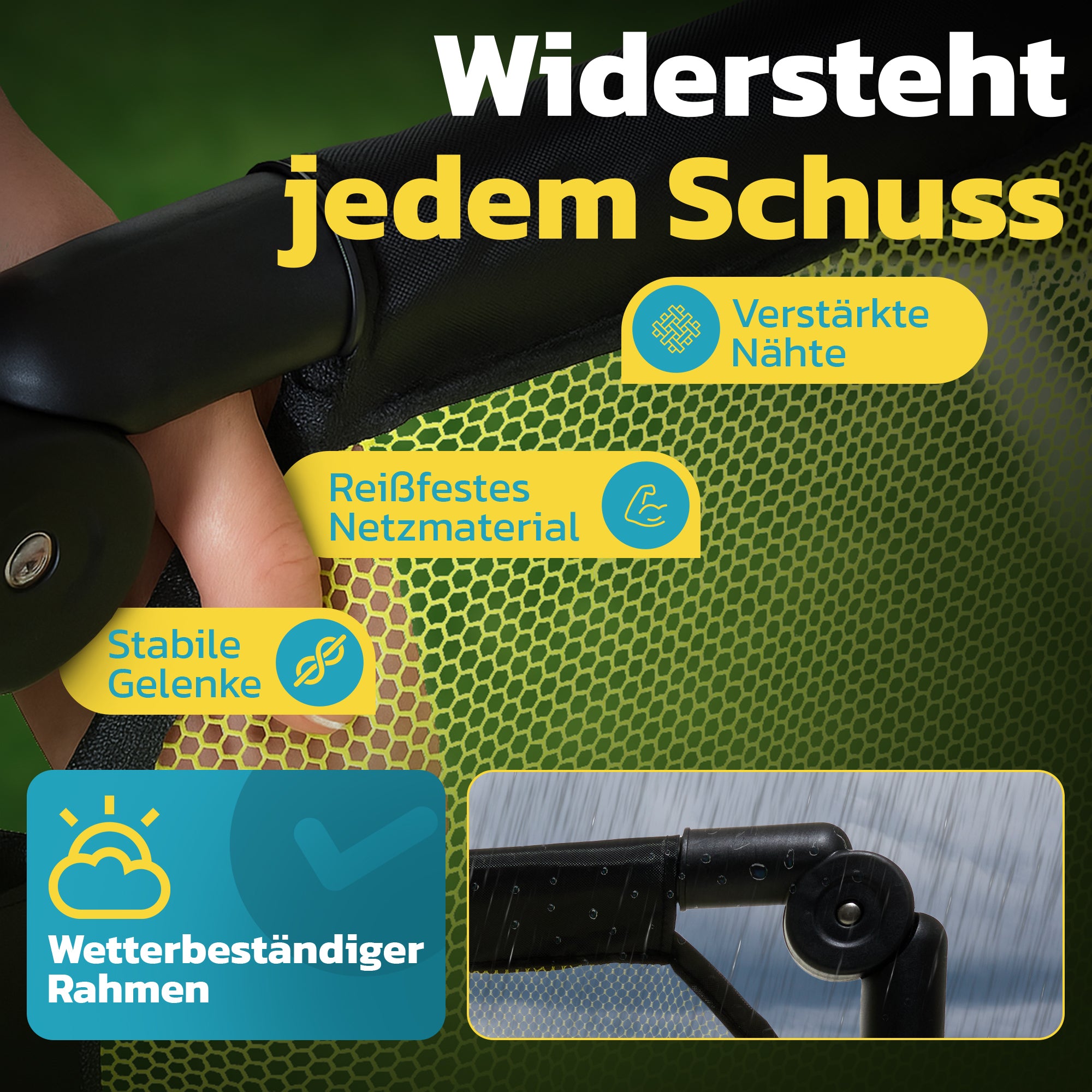 - Kennst du das? Nach einem harten Schuss fällt das Tor um? Damit ist jetzt Schluss! Dank des stabilen Weight Systems bleibt dein Tor sicher stehen – kein Nachjustieren mehr!