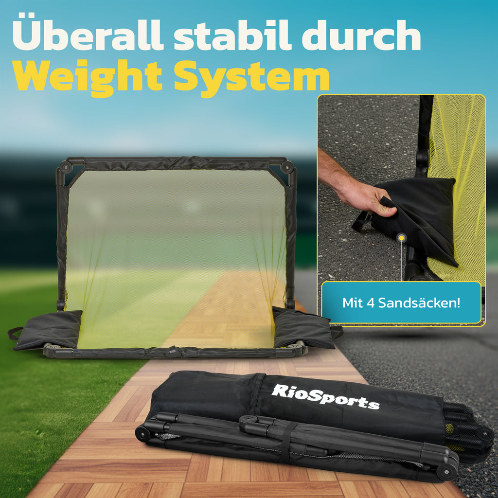 Steht stabil, obwohl mein Sohn richtig feste Schüsse hat.